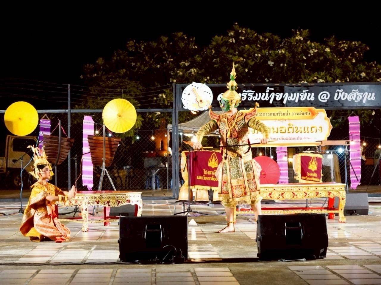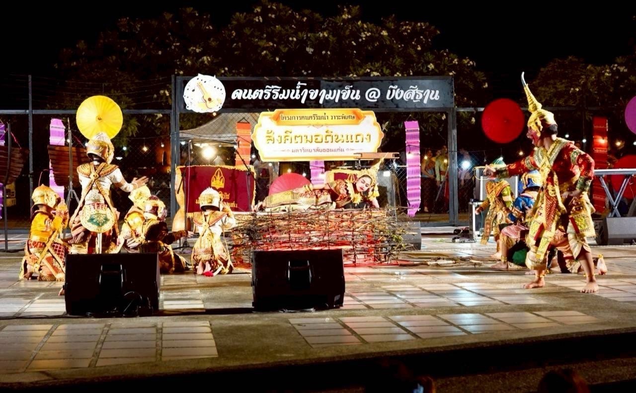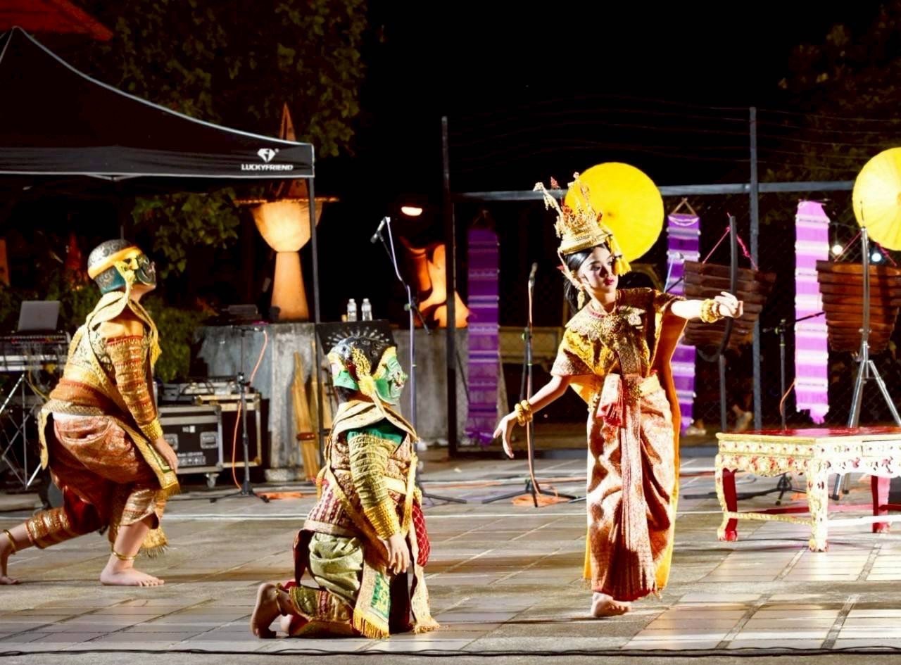 กิจกรรมครั้งนี้เต็มไปด้วยความวิจิตรตระการตา อันสะท้อนความงดงามของวัฒนธรรมไทยและอีสาน และอีกหนึ่งชุดการแสดงที่ยิ่งใหญ่ตระการตา คือการแสดงโขน เรื่องรามเกียรติ์ ชุดนางลอย โดยมีเนื้อเรื่องว่า ครั้งเมื่อพิเภก ทำนายฝันว่า ทศกัณฐ์ จะแพ้สงครามและถูกฆ่าตายควรจะสะเดาะเคราะห์เสียโดยคืน นางสีดา ไปให้แก่พระราม แต่ทศกัณฐ์โกรธจึงขับ พิเภก ออกไปเสียจากกรุงลงกาเมื่อ พิเภก ออกจากกรุงลงกาแล้วก็สมัครเข้าไปเป็นพวกพระราม ทศกัณฐ์ คิดหาทางยุติศึกชิงตัว นางสีดา กับพระราม โดยคิดว่าถ้า พระราม เห็นว่านางสีดา ตายไปแล้วก็คงจะยกทัพกลับไปเอง จึงวางแผนให้ นางเบญกาย ลูกสาวของพิเภก แปลงกายเป็นนางสีดา ทำตายลอยน้ำไปที่หน้ากองทัพพระราม เบญกายกลัวทศกัณฐ์ ก็จำใจยอม แต่ไม่รู้จะแปลงอย่างไรเพราะยังไม่เคยเห็นหน้าสีดา ทศกัณฐ์จึงให้ไปดูรูปโฉมนางสีดา ณ สวนขวัญ จนจำได้แล้วก็เหาะไปจนถึงเหมติรันบบรพตแล้วแปลงกายเป็นนางสีดาเสียชีวิตลอยน้ำไปวนอยู่ที่หน้ากองทัพพระราม