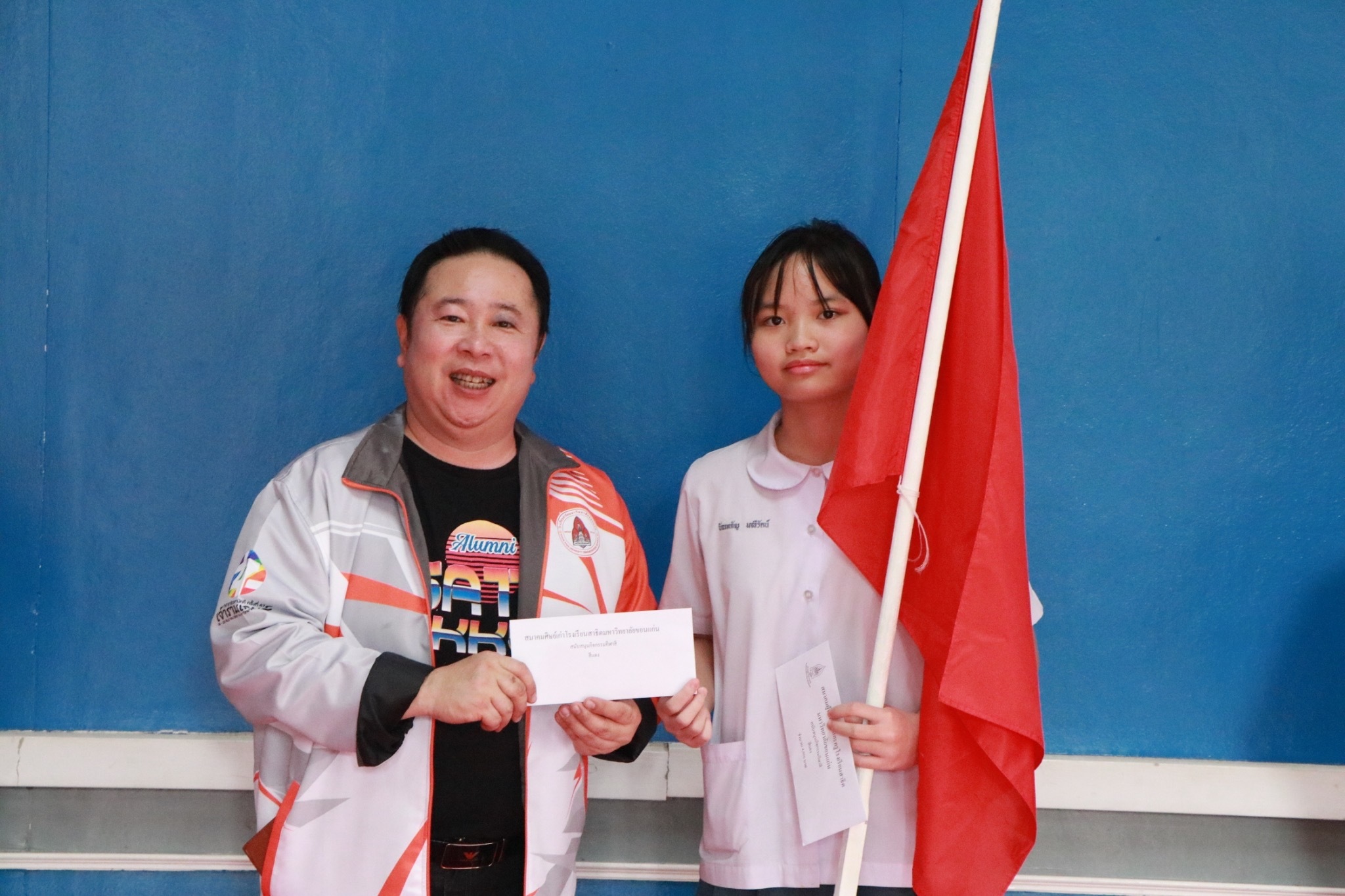 ได้มีตัวแทนอาจารย์ และตัวแทนนักเรียนจากคณะสีต่าง ๆ เป็นผู้รับมอบ เพื่อนำไปใช้ประกอบการจัดกิจกรรมให้สำเร็จลุล่วงบรรลุตามวัตถุประสงค์ และสร้างสรรค์กิจกรรมที่ส่งเสริมความสามัคคีต่อไป