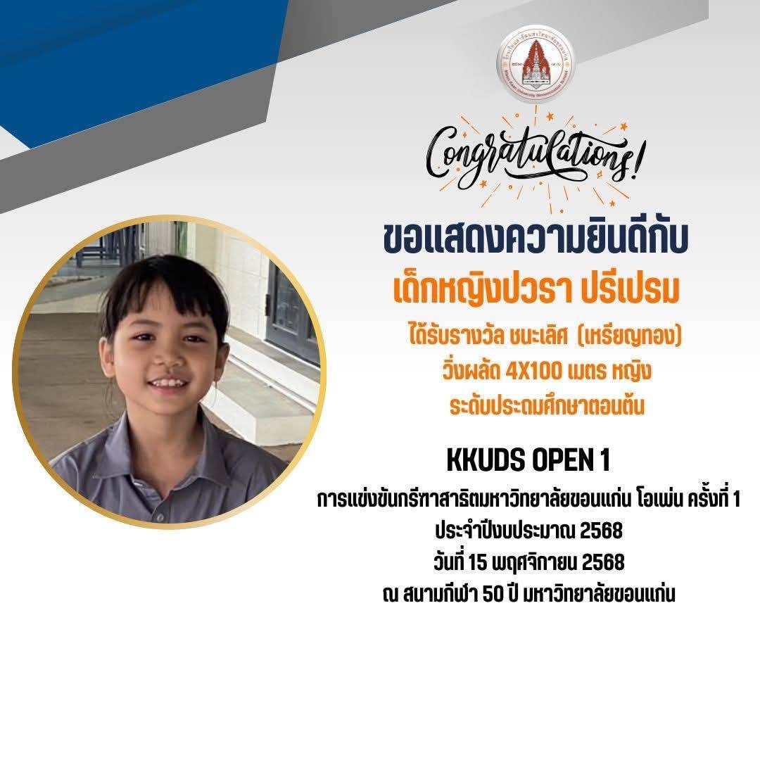 ผลรางวัลการแข่งขัน KKUDS OPEN1 การแข่งขันกรีทาสาธิตมหาวิทยาลัยขอนแก่น โอเพ่น ครั้งที่ 1 ประจำปีงบประมาณ 2568