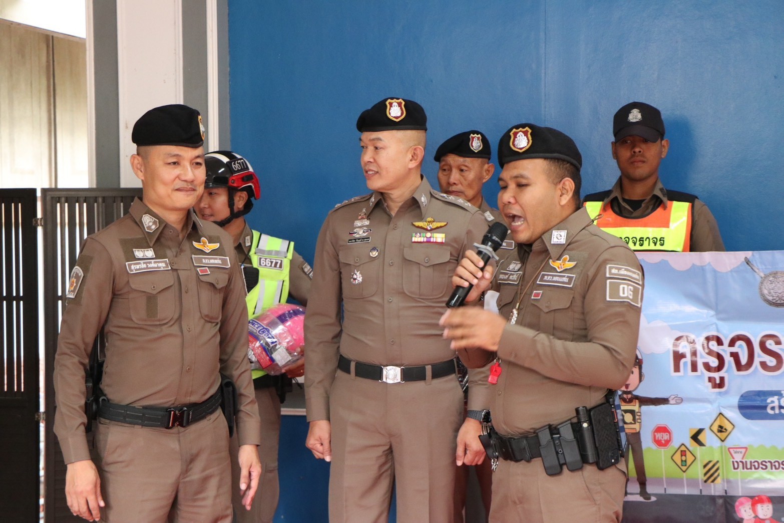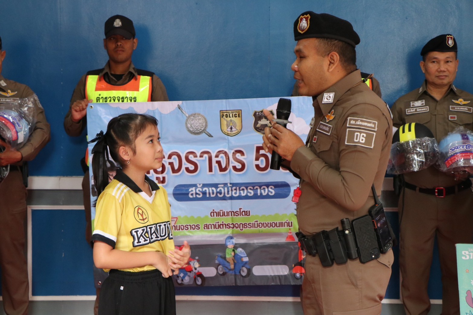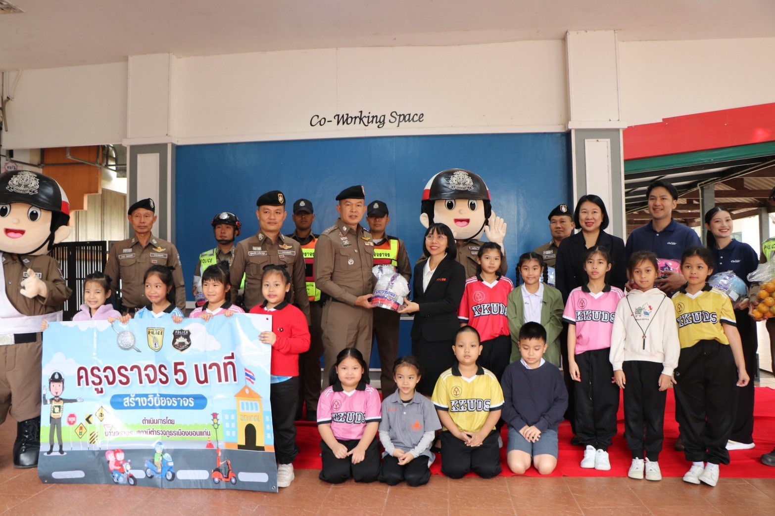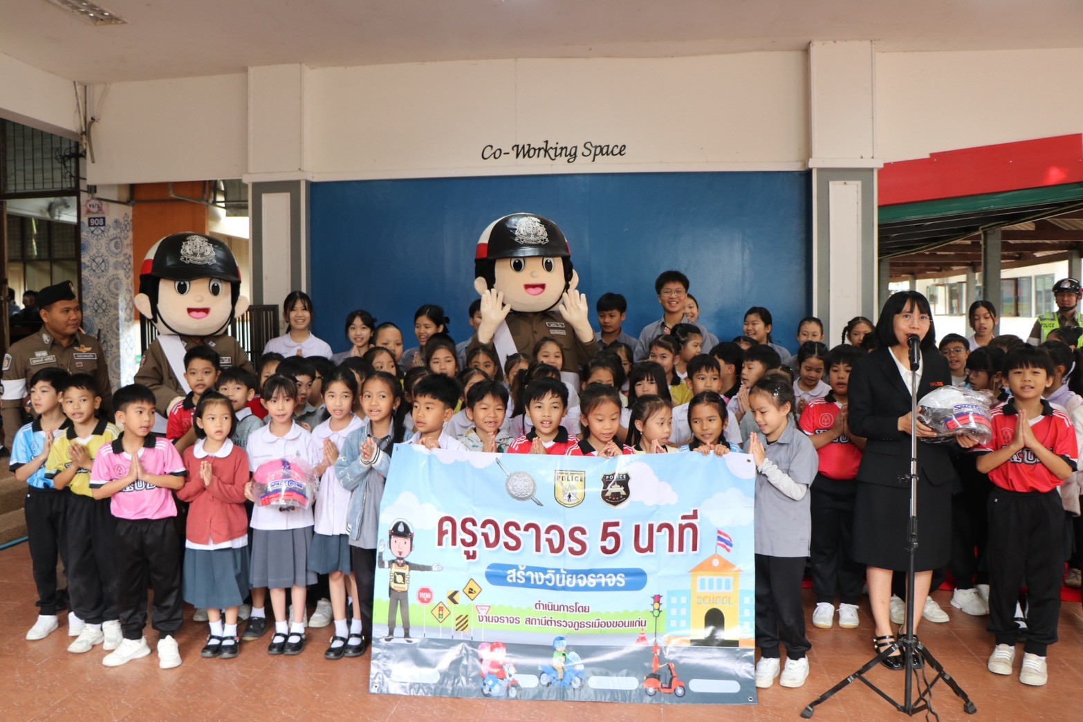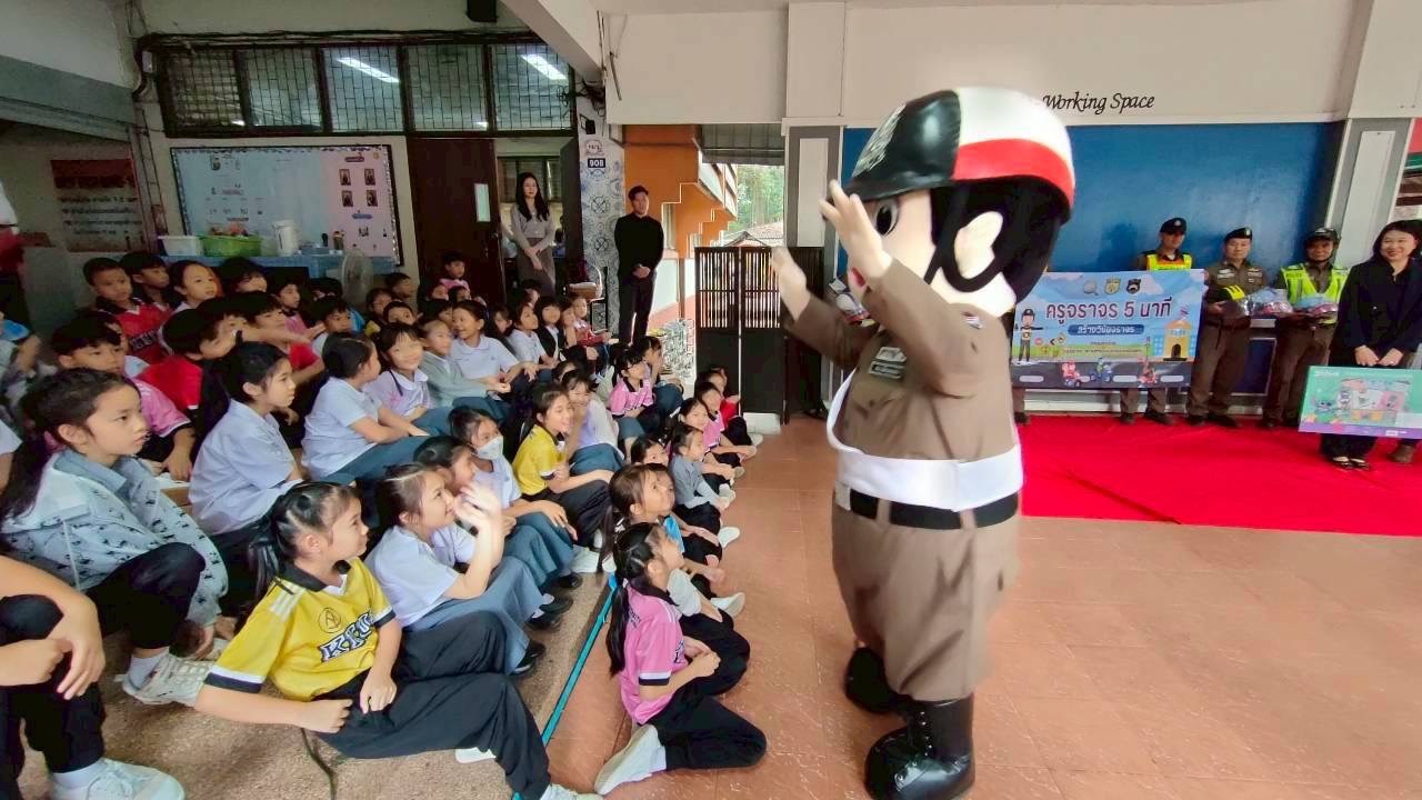 วันศุกร์ที่ 12 ธันวาคม 2568 เวลา 08.30 น. โรงเรียนสาธิตมหาวิทยาลัยขอนแก่น ฝ่ายประถมศึกษา (ศึกษาศาสตร์) เต็มไปด้วยรอยยิ้มและบรรยากาศแห่งการเรียนรู้อย่างสนุกสนาน เมื่อได้รับเกียรติจาก พ.ต.อ.ธนาวัชร ดีบุญมี ณ ชุมแพ รอง ผบก.ภ.จว.ขอนแก่น พ.ต.ท.สุรพรชัย วงศ์ผาคุณ รอง ผกก.จร.สภ.เมืองขอนแก่น พ.ต.ท.ยุทธพงศ์ คชรัตน์ สว.จร.สภ.เมืองขอนแก่น พร้อมด้วยคณะผู้บริหารโรงแรมแอสลิบฯ และเจ้าหน้าที่ตำรวจจราจร ร่วมกันบรรยายให้ความรู้ด้านกฎหมายจราจร และรณรงค์การสวมหมวกนิรภัยในการขับขี่รถจักรยานยนต์ให้แก่นักเรียนและคณะครู ภายใต้โครงการน่ารักๆ “ครูจราจร 5 นาที” ที่มุ่งปลูกฝังวินัยจราจรอย่างใกล้ชิดและเข้าใจง่ายสำหรับเด็กประถมศึกษา