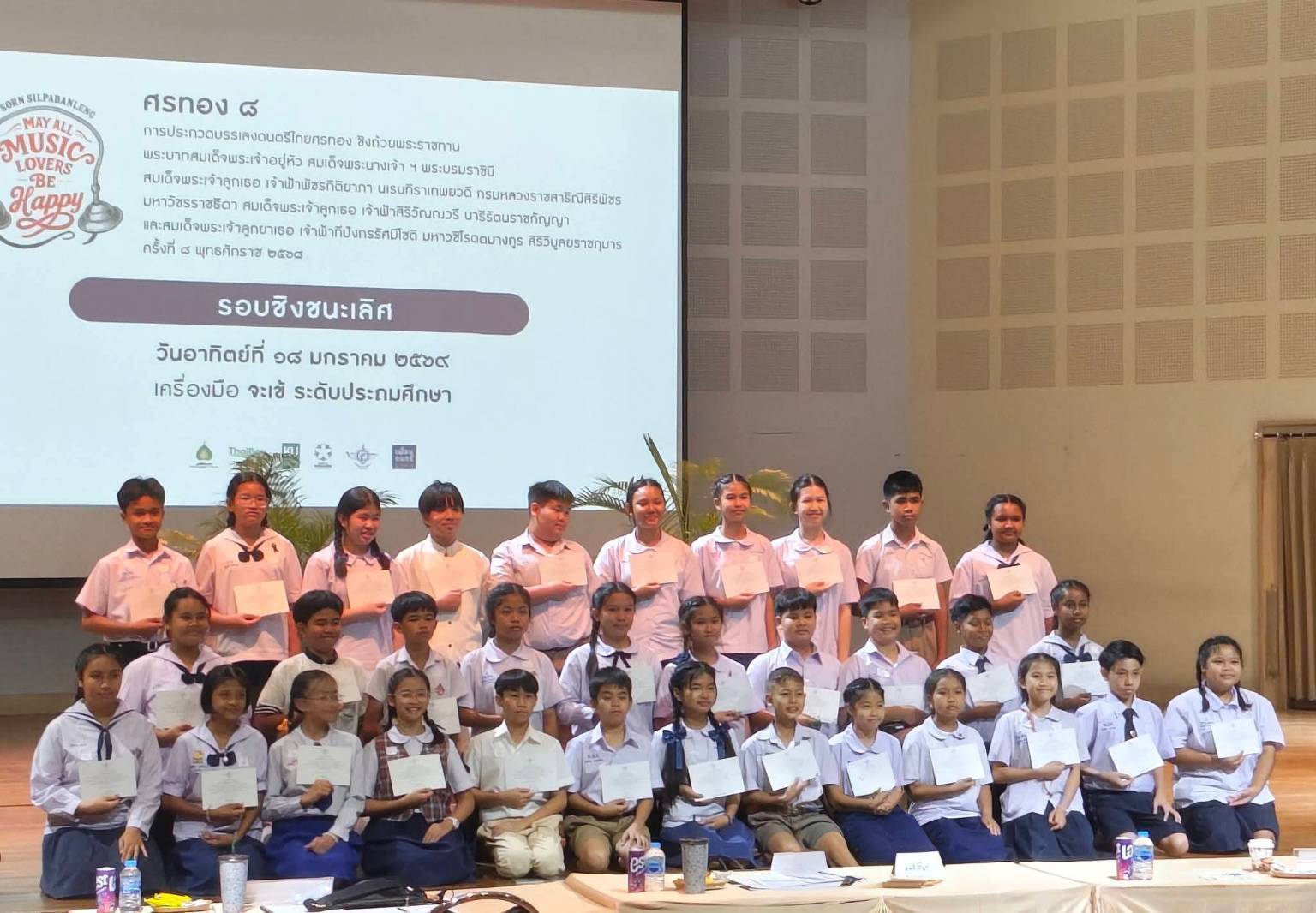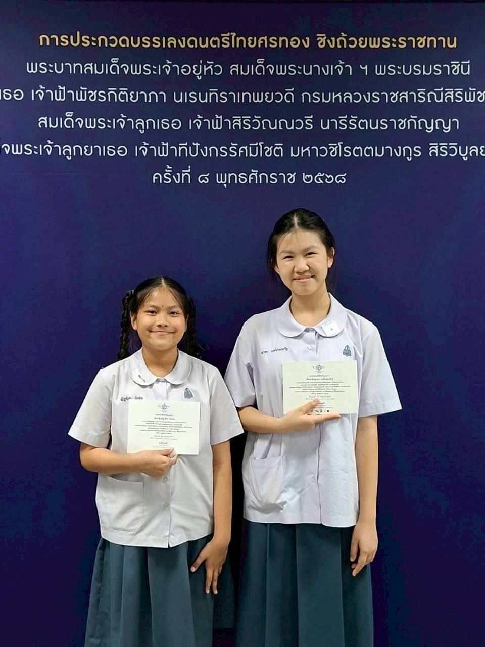 ขอแสดงความยินดีกับนักเรียนโรงเรียนสาธิตมหาวิทยาลัยขอนแก่น ฝ่ายประถมศึกษาในการประกวดบรรเลงดนตรีไทยศรทอง ชิงถ้วยพระราชทานพระบาทสมเด็จพระเจ้าอยู่หัว สมเด็จพระนางเจ้าฯ พระบรมราชินี สมเด็จพระเจ้าลูกเธอ เจ้าฟ้าพัชรกิติยาภา นเรนทิราเทพยวดี กรมหลวงราชสาริณีสิริพัชร มหาวัชรราชธิดา สมเด็จพระเจ้าลูกเธอ เจ้าฟ้าสิริวัณณวรี นารีรัตนราชกัญญา และสมเด็จพระเจ้าลูกยาเธอ เจ้าฟ้าทีปังกรรัศมีโชติ มหาวชิโรตตมางกูร สิริวิบูลยราชกุมาร จัดโดยมูลนิธิหลวงประดิษฐ์ไพเราะ (ศร ศิลปบรรเลง) ครั้งที่ 8 พุทธศักราช 2568 วันที่ 18 มกราคม พ.ศ.2569 เครื่องมือจะเข้ เเละซออู้ ระดับประถมศึกษา โดยนักเรียนที่ได้รับเกียรติบัตรเข้าร่วมดังนี้