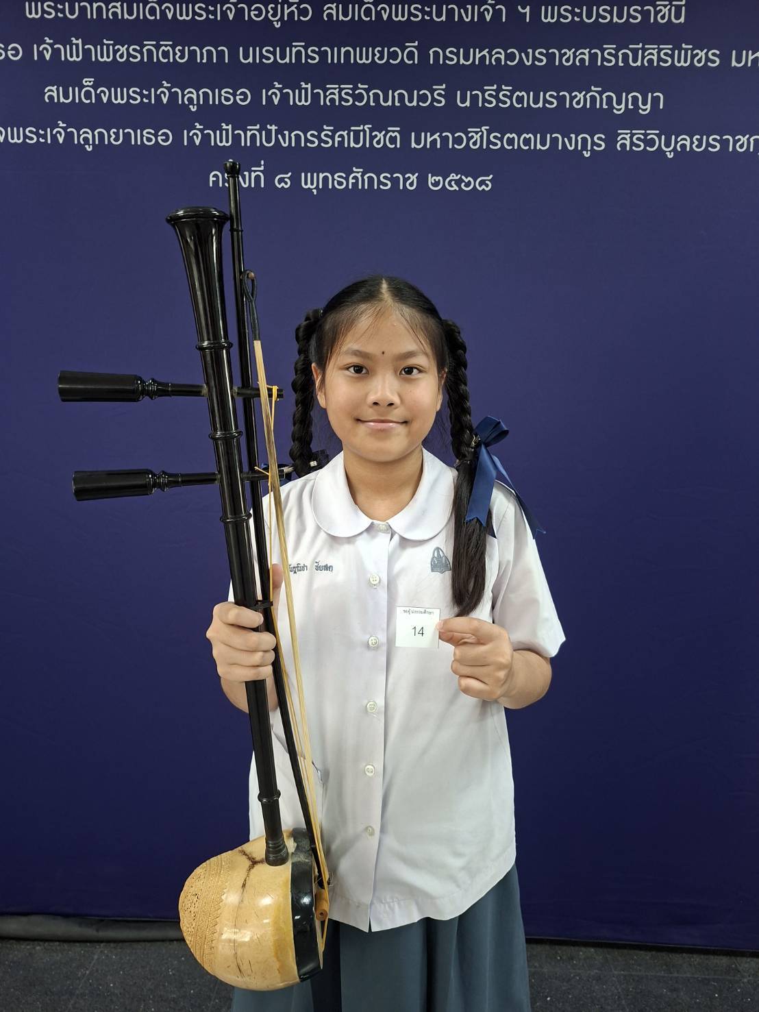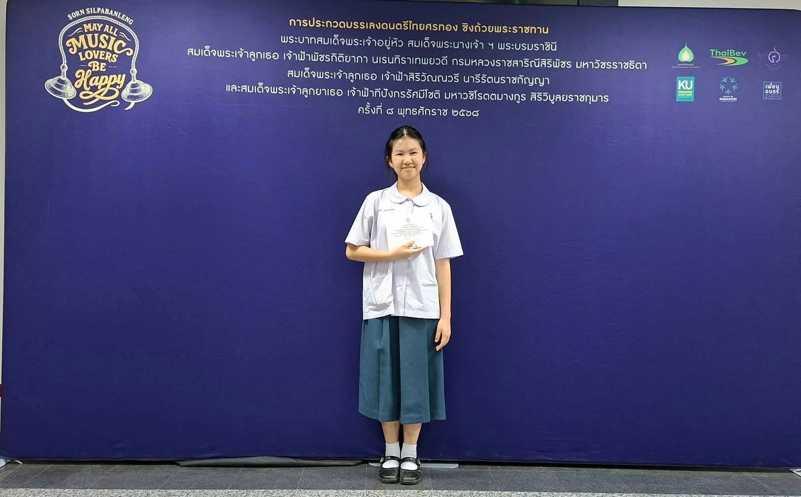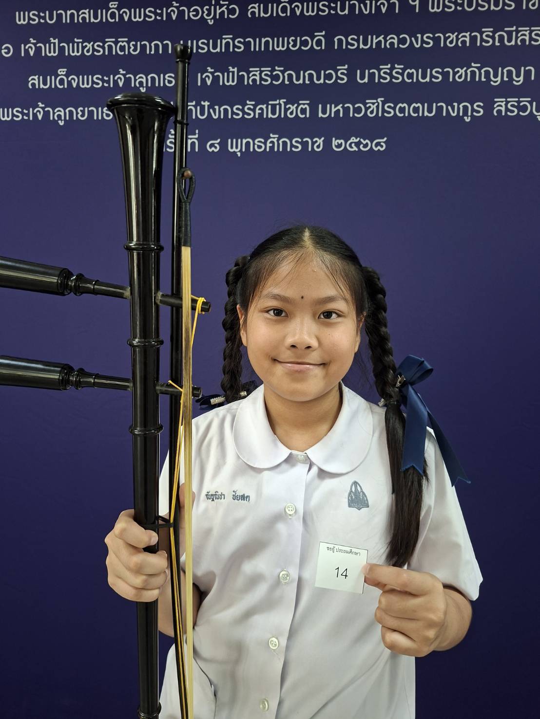 2. เด็กหญิงณัฐณิชา ชัยสด เครื่องมือ ซออู้ประถมศึกษา ได้ลำดับที่ 12