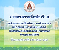 ประกาศรายชื่อนักเรียนชั้นประถมศึกษาปีที่ 1 หลักสูตร Intensive English and Innovator Program: IEIP