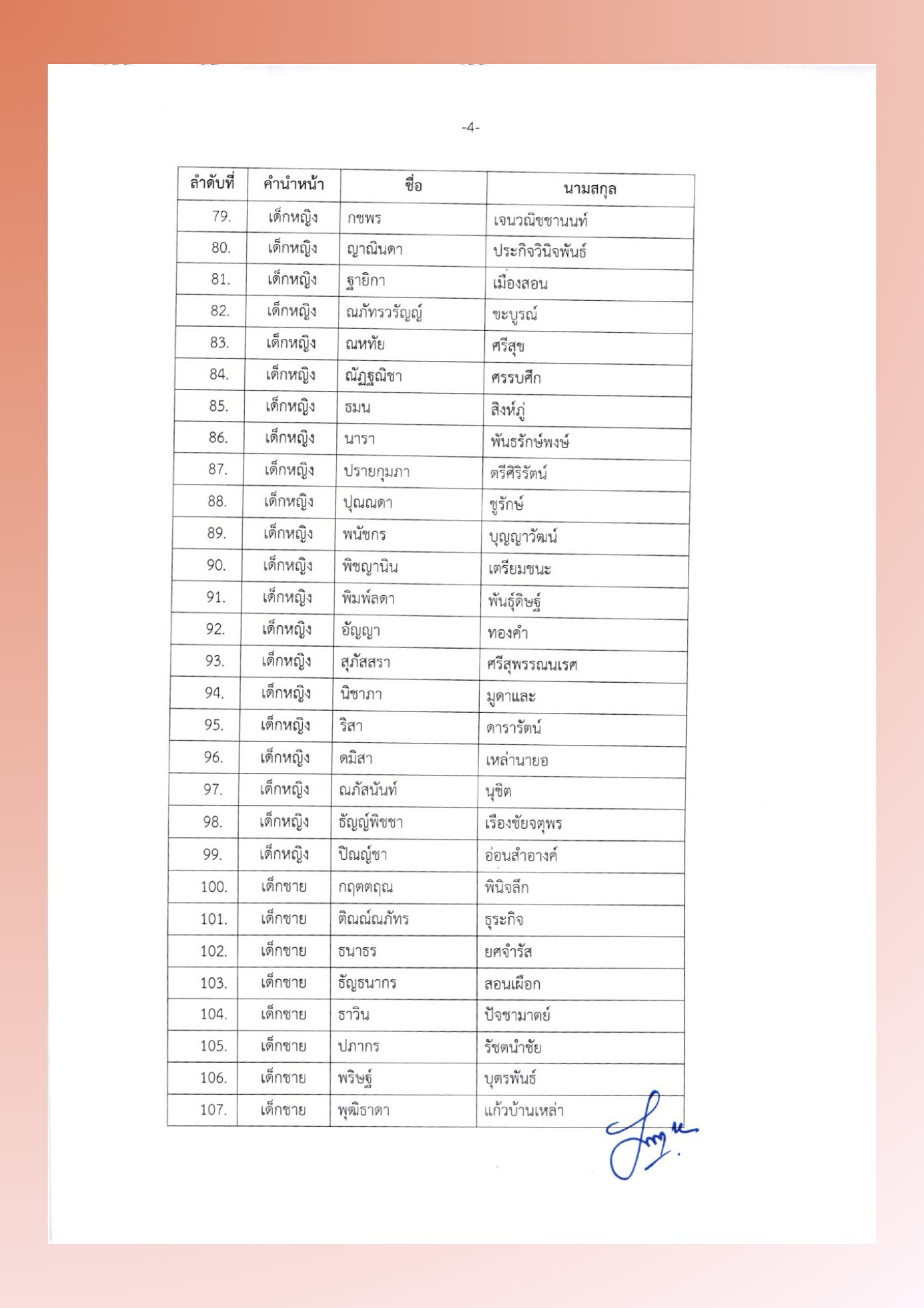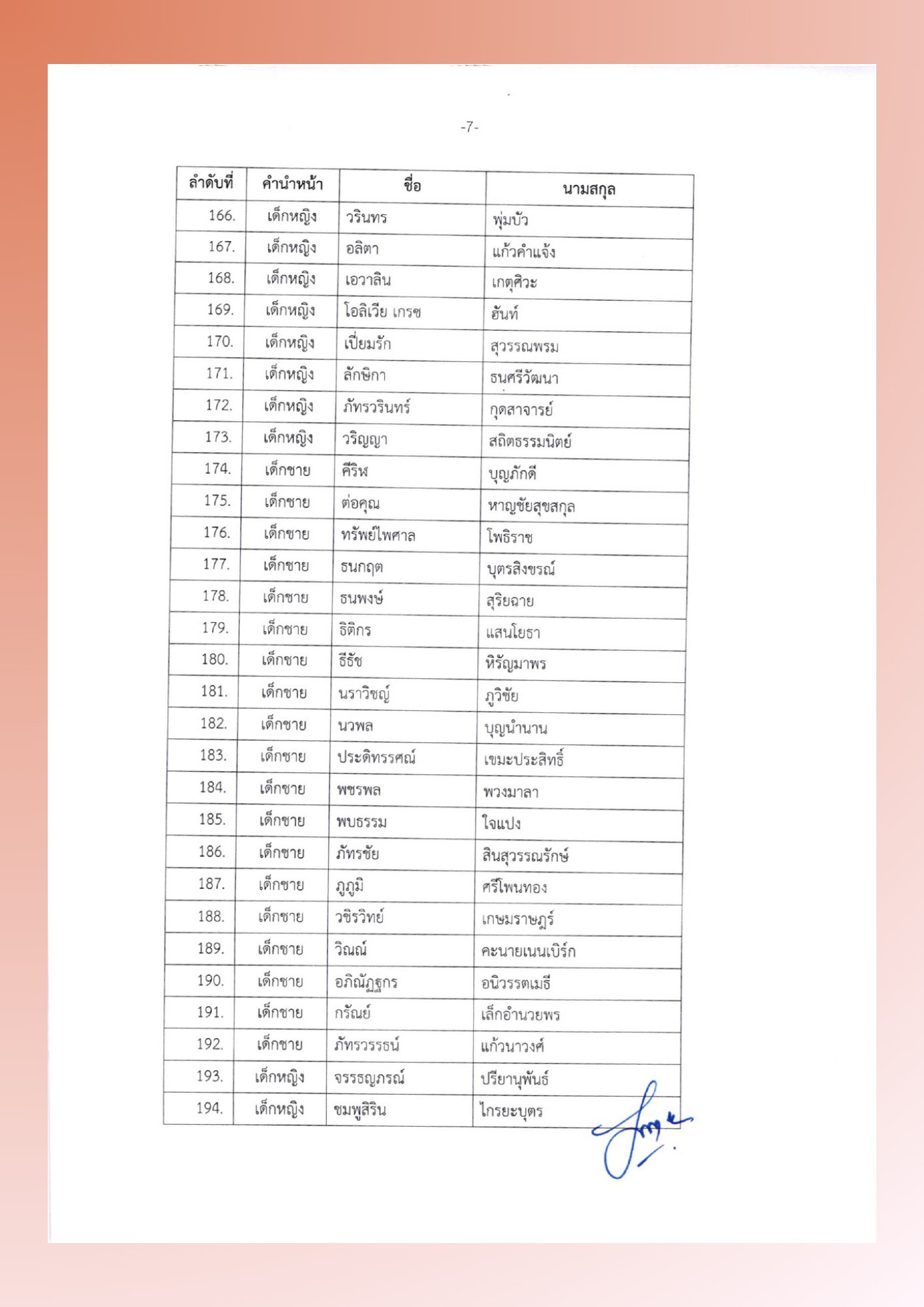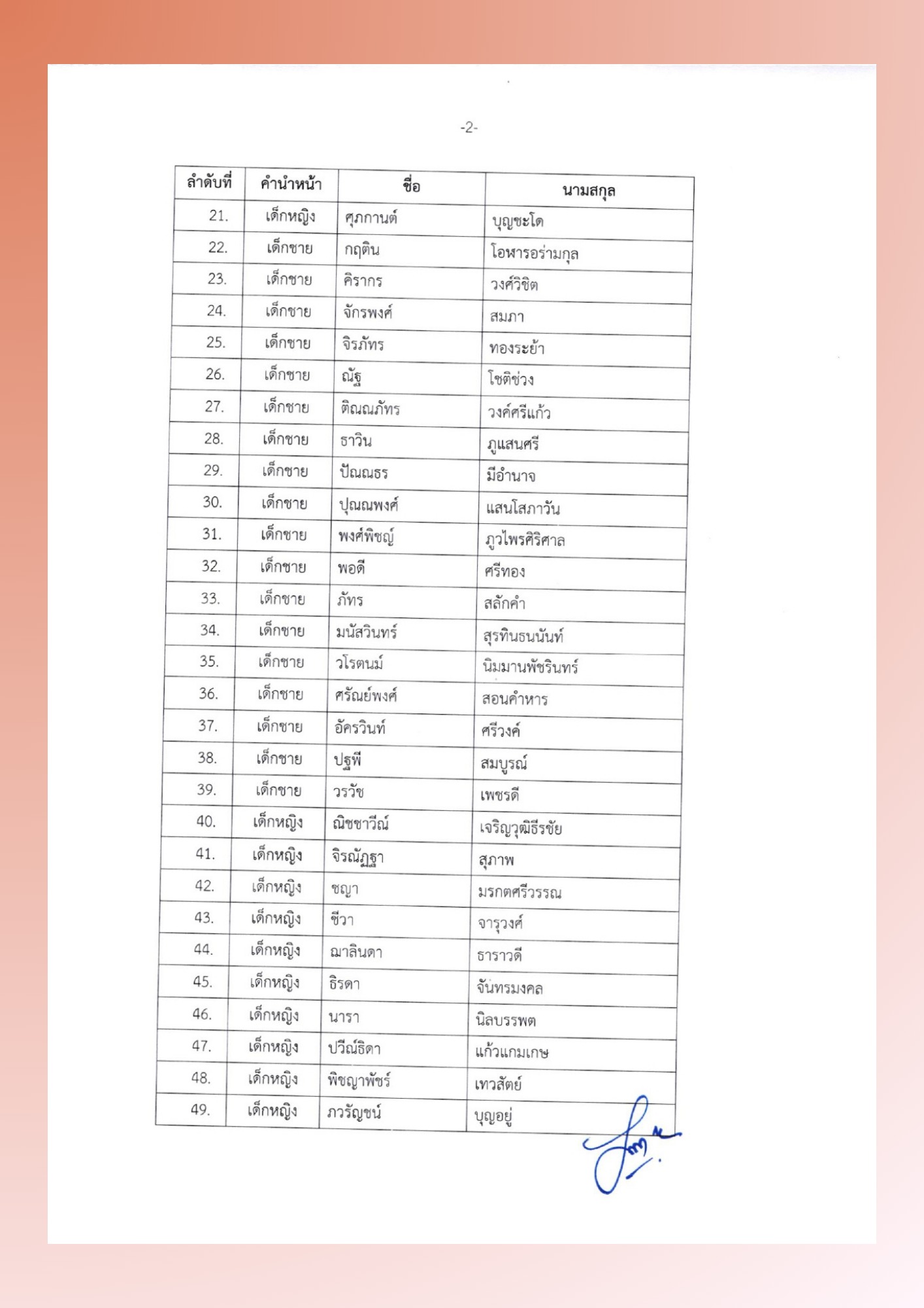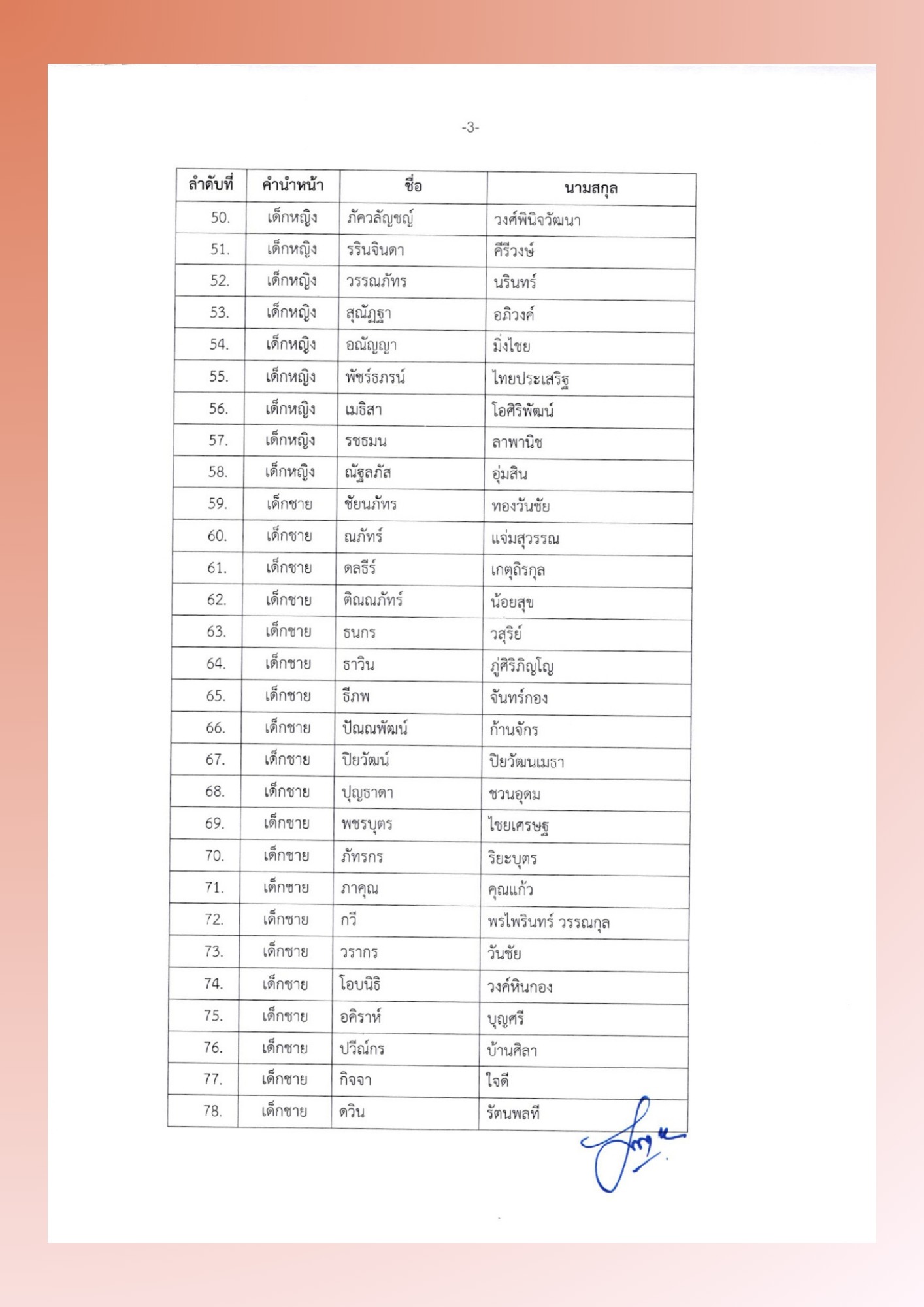 ประกาศรายชื่อนักเรียนชั้นประถมศึกษาปีที่ 1 (ห้องเอ)